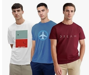 NOBERO Men’s Graphic Printed Regular Fit Cotton T-Shirt (Pack of 3)